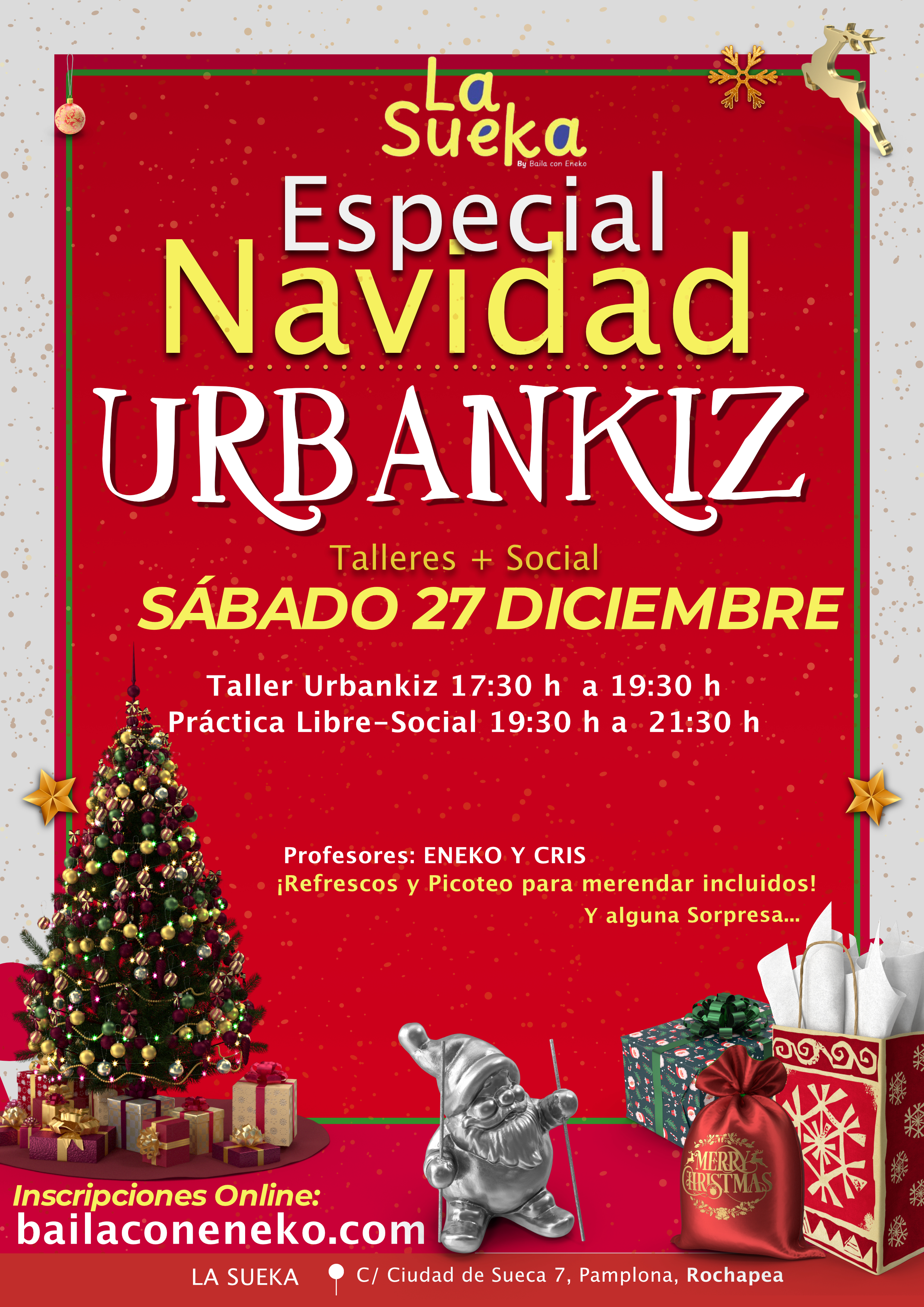 Un día Especial de Urbankiz en Navidad, 2 horitas de clase evolutivo, desde nivel básico iremos complicando poco a poco, ejercicios, combos y técnica..... Recomendable a partir de nivel Medio hasta avanzados. 2 horitas de social, donde podéis practicar lo aprendido, e ir recordando todo lo aprendido este curso.